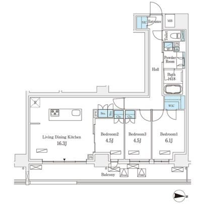 この賃貸物件の空室1303の間取り画像