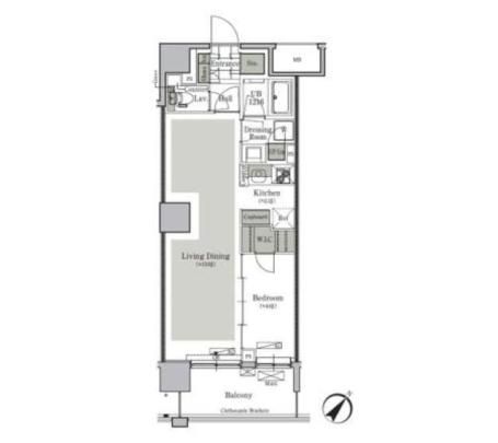 物件の広さは44.73m2で人気の1LDKです。