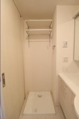 【その他】 洗濯機置き場上には使いやすい棚
