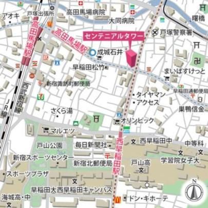 東京都新宿区高田馬場2丁目 周辺MAP |
