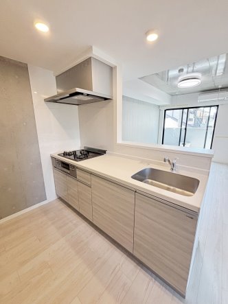 キッチンも大型3口システムキッチンです。カウンター型ですので、開放的