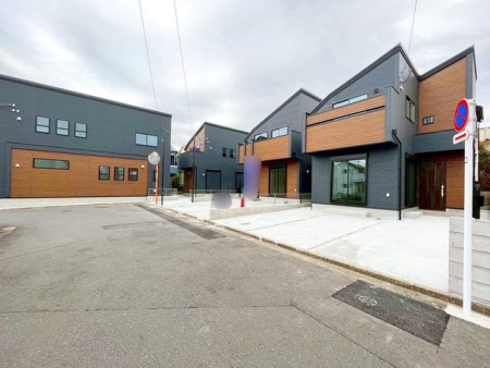 広々としたパントリー付きの号棟や19帖以上のLDKなど 異なる4棟が完成しました♪ 全棟駐車スペースは2台分あり敷地もゆとりがございます♪ 前面道路は広く交通量も少ないので駐車も楽々です!